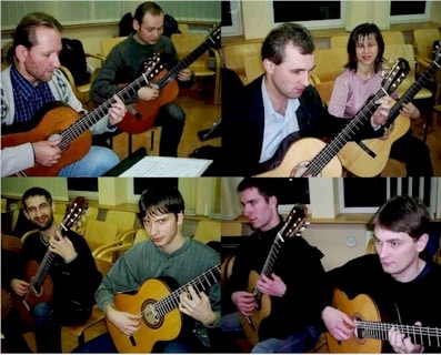 The Silesian Guitar Octet was formed in 2001. It is composed by professors, graduates and students of Academy of Music in Katowice. Tomasz Spalinski – professor at the Institute of Music (branch of the University of Silesia in Cieszyn). He was a bursar of the Spanish Government (1992-1993). Jacek Plosa – student at the Academy of Music in Katowice, taught by professor Franciszek Wieczorek. He is a laureat at national guitar competitions (Cieszyn, Koszalin, Krynica, Kielce).Franciszek Wieczorek – professor at the Academy of Music in Katowice. He is an initiator as well as the leader of Silesian Guitar Octet. He is also a publisher and active organizer of music life (Artistic Director of the International Festival in Zory). Katarina Wieczorek – teacher at Second Grade Music School in Katowice. Together with her husband F. Wieczorek she is a manager of the Private Concert Agency MODRAN (she is also Artistic Director of the International Festival in Zory). Mariusz Bury – graduated from the Academy of Music in Katowice. He is a laureat at guitar competition in Sanok. Jan Kudelka – student at the Secondary Music School in Katowice, taught by professor Franciszek Wieczorek. He is a laureat at national and international guitar competitions (Volos – Greece, Uzgorod – Ukraine, Gdansk, Mrzezyno, Cieszyn). Piotr Kudelka – student at the Academy of Music in Katowice, taught by professor Marek Nosal. He is a laureat at guitar competition (Sanok, Cieszyn, Krynica, Gdansk). Grzegorz Szymiec – graduated from the Academy of Music in Katowice. He is a laureat at many national competitions (Cieszyn, Zory, Koszalin, Kielce).