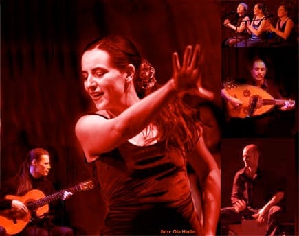 Azafrán invites to an alltogether unique colorful dance and music from flamencotradition with inspiration from arabic, india and nordic culture of music. The flamenco passion expression and expolsive rhythm, the poetic arbabien tune, the suggestive indian songs and melancholy nordic tune, all come together. A night with Azafrán is a journey through a number of frame of mind, from tragedy and grief to explosive energy, joy of living and sensualism.